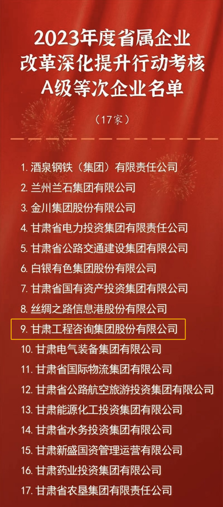 2023年度省屬企業改革深化提升行動考核A級等次企業名單